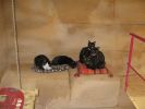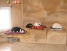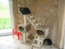 Dans l'une des deux vastes tours en montant les escaliers il découvre les mezzanines et ses amis avec qui il ira jouer sur les balançoires, faire la sieste sur les coussins douillets posés sur les rochers dans un décor romanesque. Avec un accès permanent dans les grands jardins, votre chat n'aura qu'une envie ; c'est de revenir au château pour retrouver ses amis.