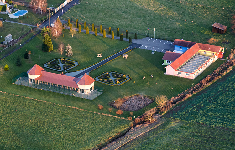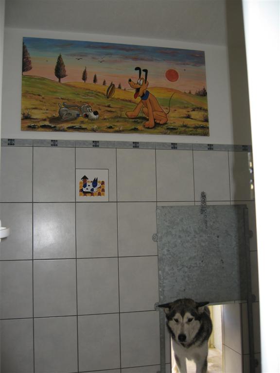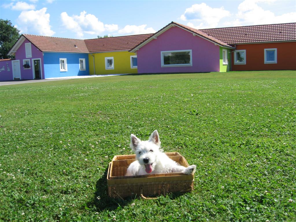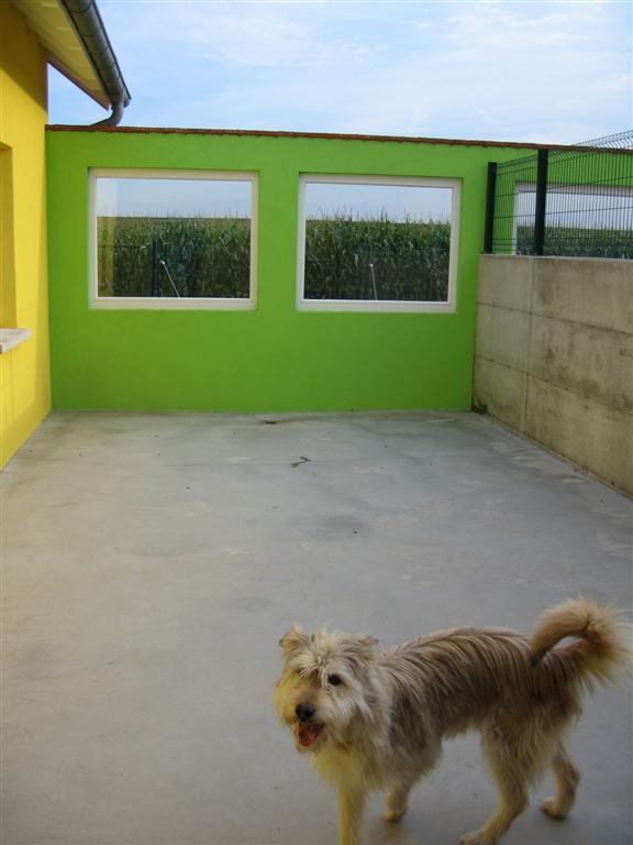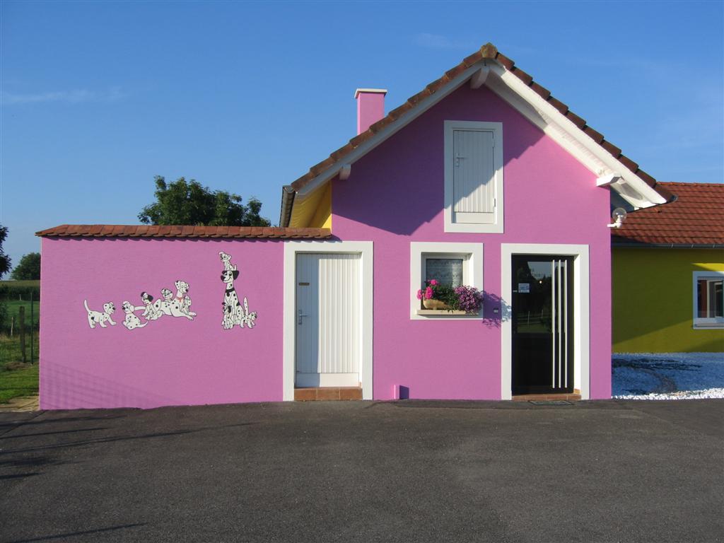 Cet hôtel unique en Europe a été réalisé et adapté à votre chien selon son mode de vie. Construit sur un terrain de 10250m2, ses couleurs vives et chaudes rappellent les maisons de l'ile de BURANO (près de VENISE) ou celles du centre ville de CAORLE. Les murs intérieurs, quant à eux, sont ornés d'illustrations représentant les héros de Disney.